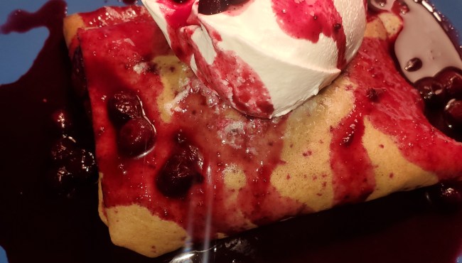 Sugar-Free Cool Whip to garnish. I used 4 Tablespoons each on mine which is 2 points blue. The Crepe is 1 point and the berry’s are free!