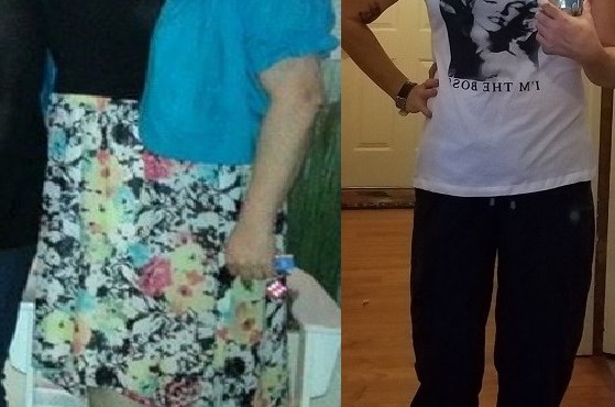So this is what losing 62 pounds looks like on a 5’8″ woman.  It’s funny because most days I don’t feel like I look any different than before.  Then I see pictures like this side by side and think “holy crap”.